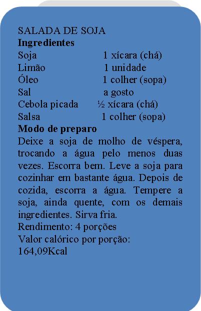 Diante de tantos benefícios, que tal incluir a soja no cardápio, preparando uma salada de soja para servir no almoço! A receita é bem simples: